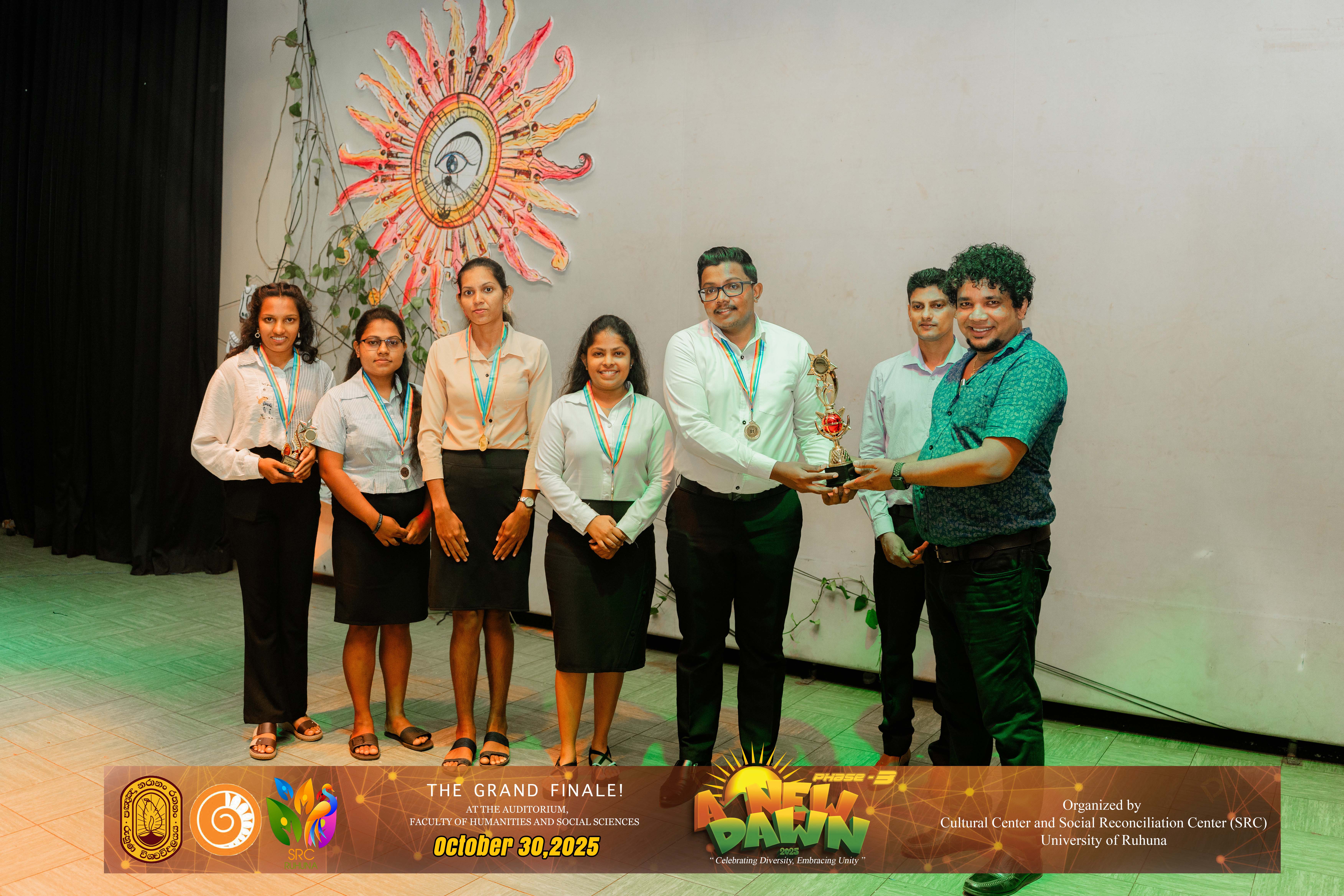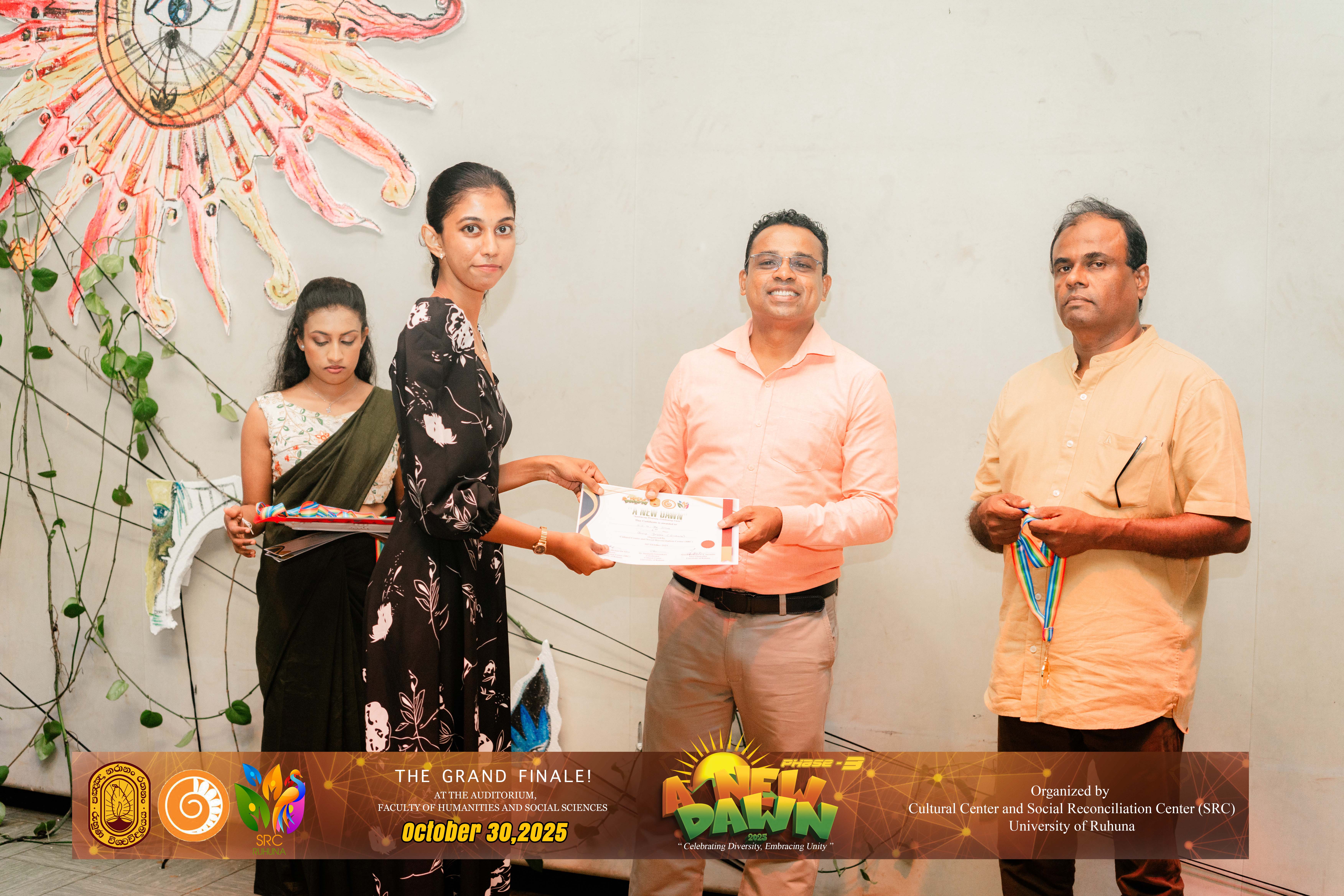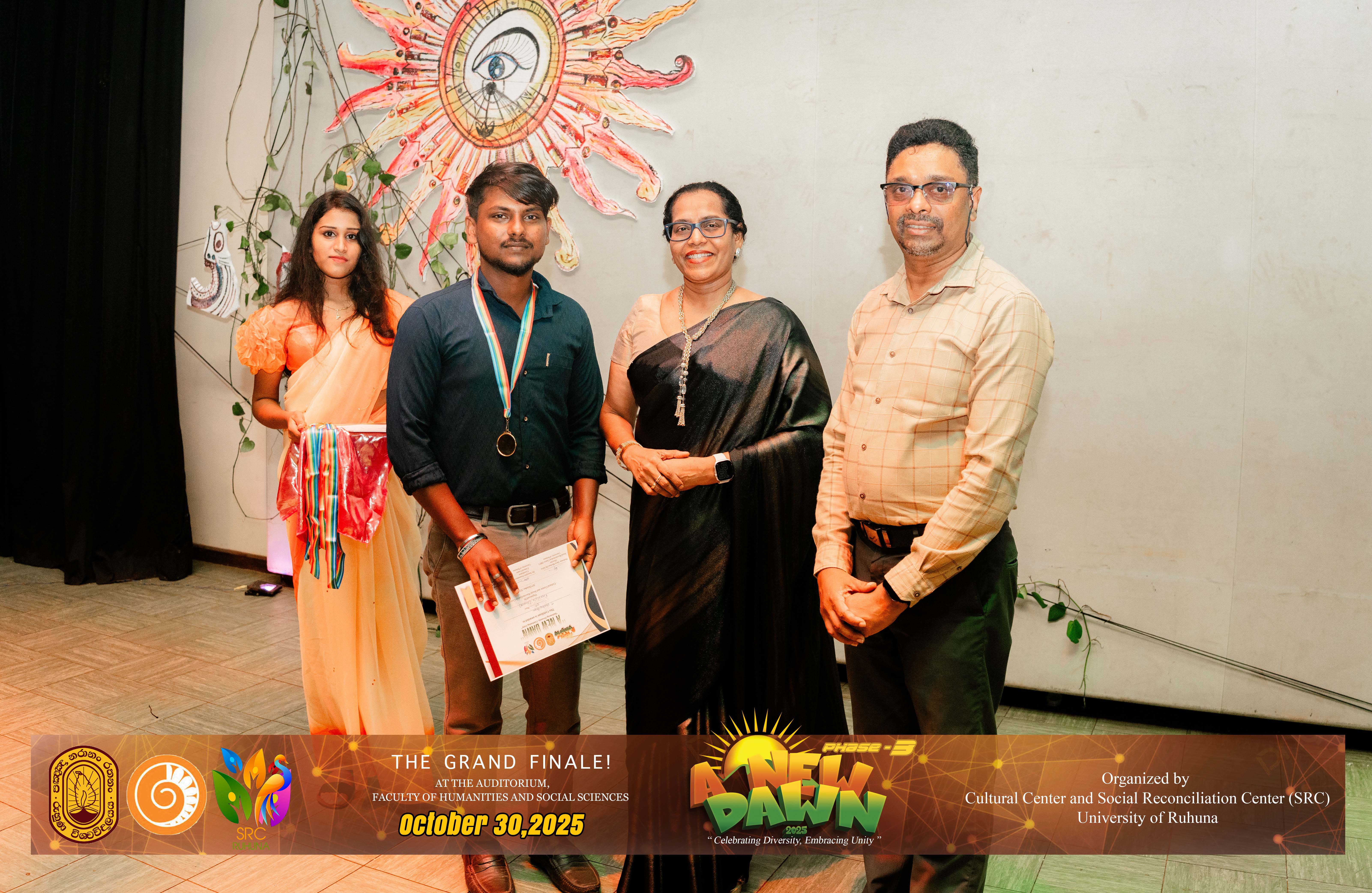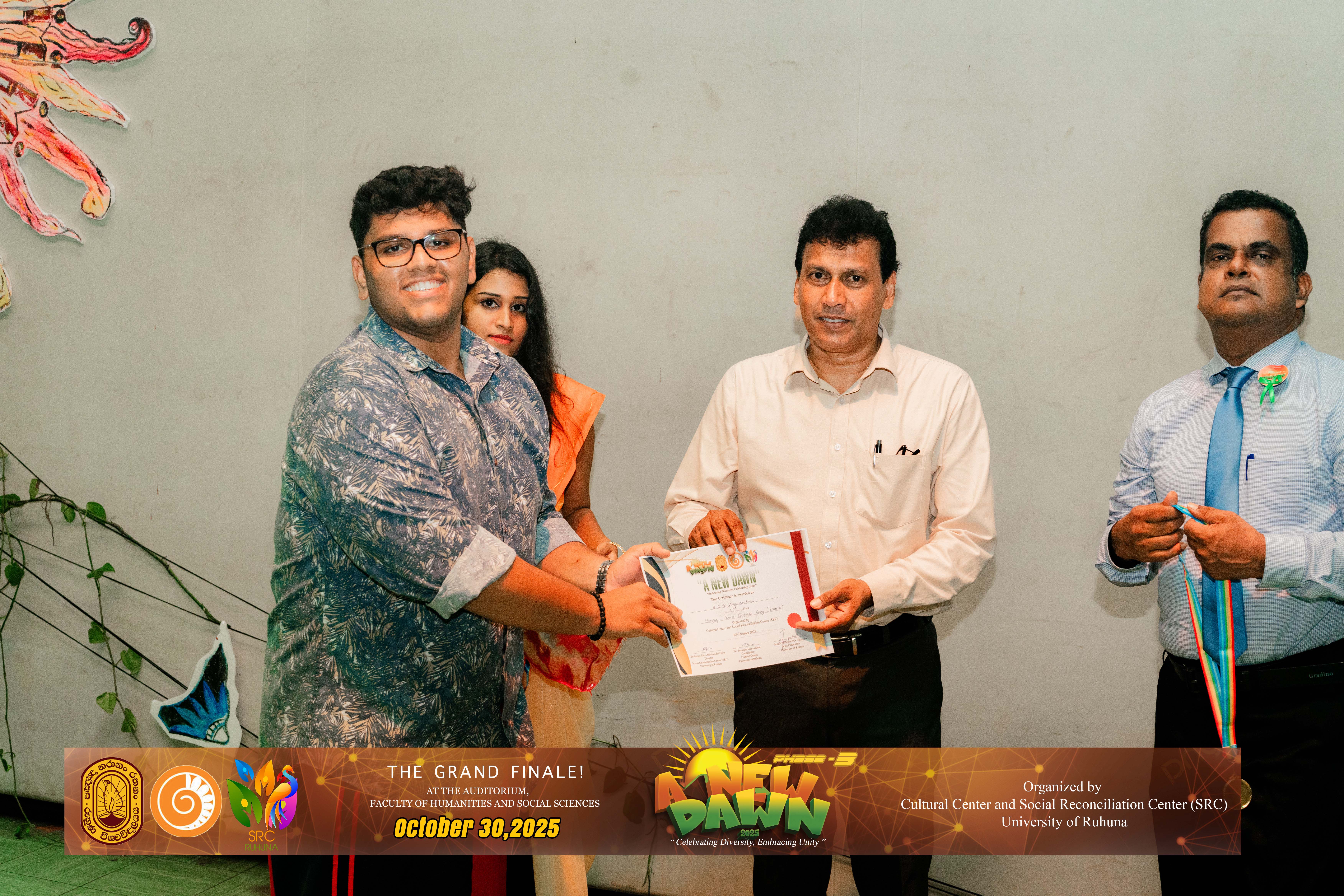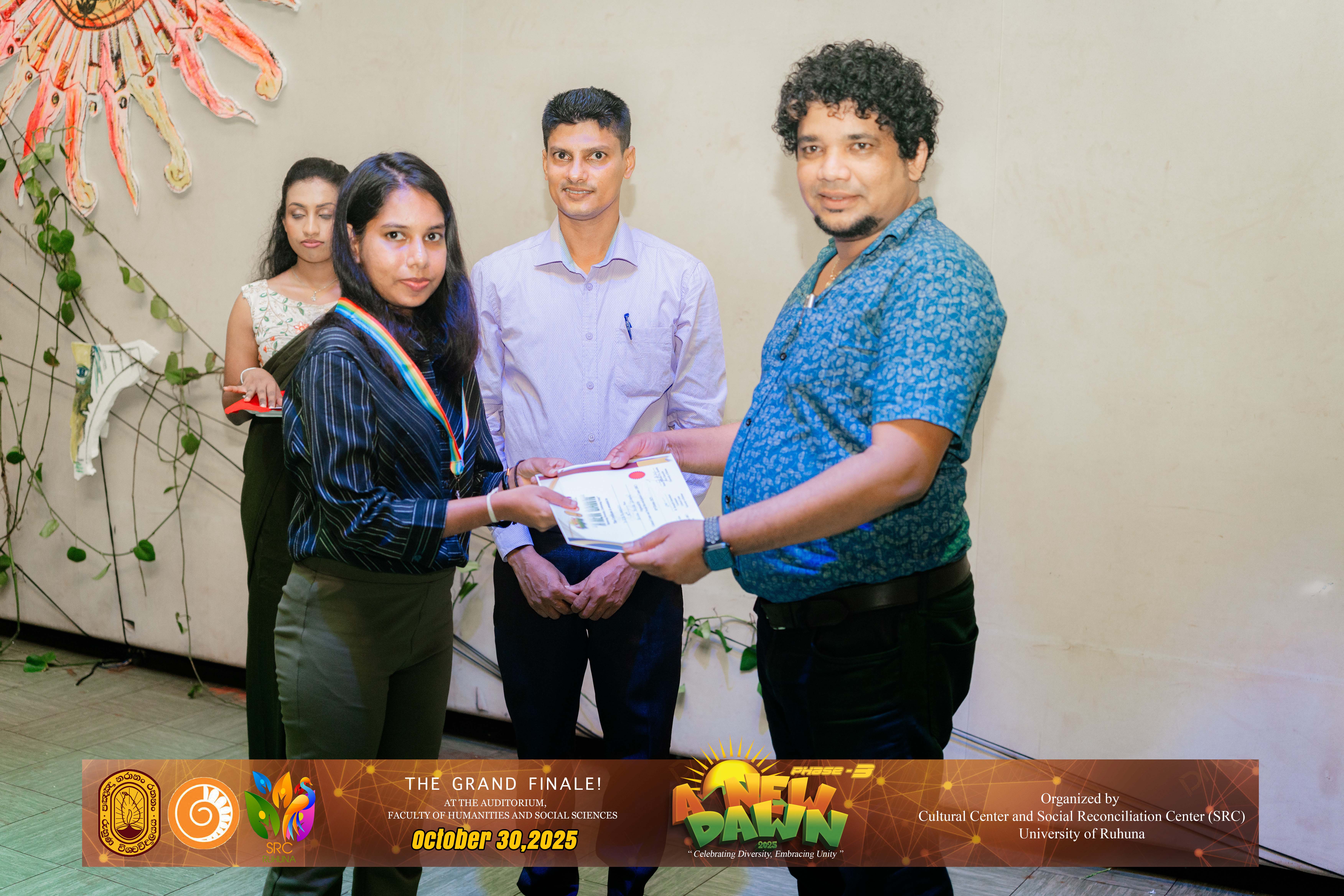 The Certificate Awarding Ceremony and Grand Finale, held under the theme “Celebrating Diversity and Embracing Unity,” successfully took place on October 30, 2025, at the Auditorium of the Faculty of Humanities and Social Sciences, University of Ruhuna. The event was organized in collaboration with the Social Reconciliation Centre (SRC).