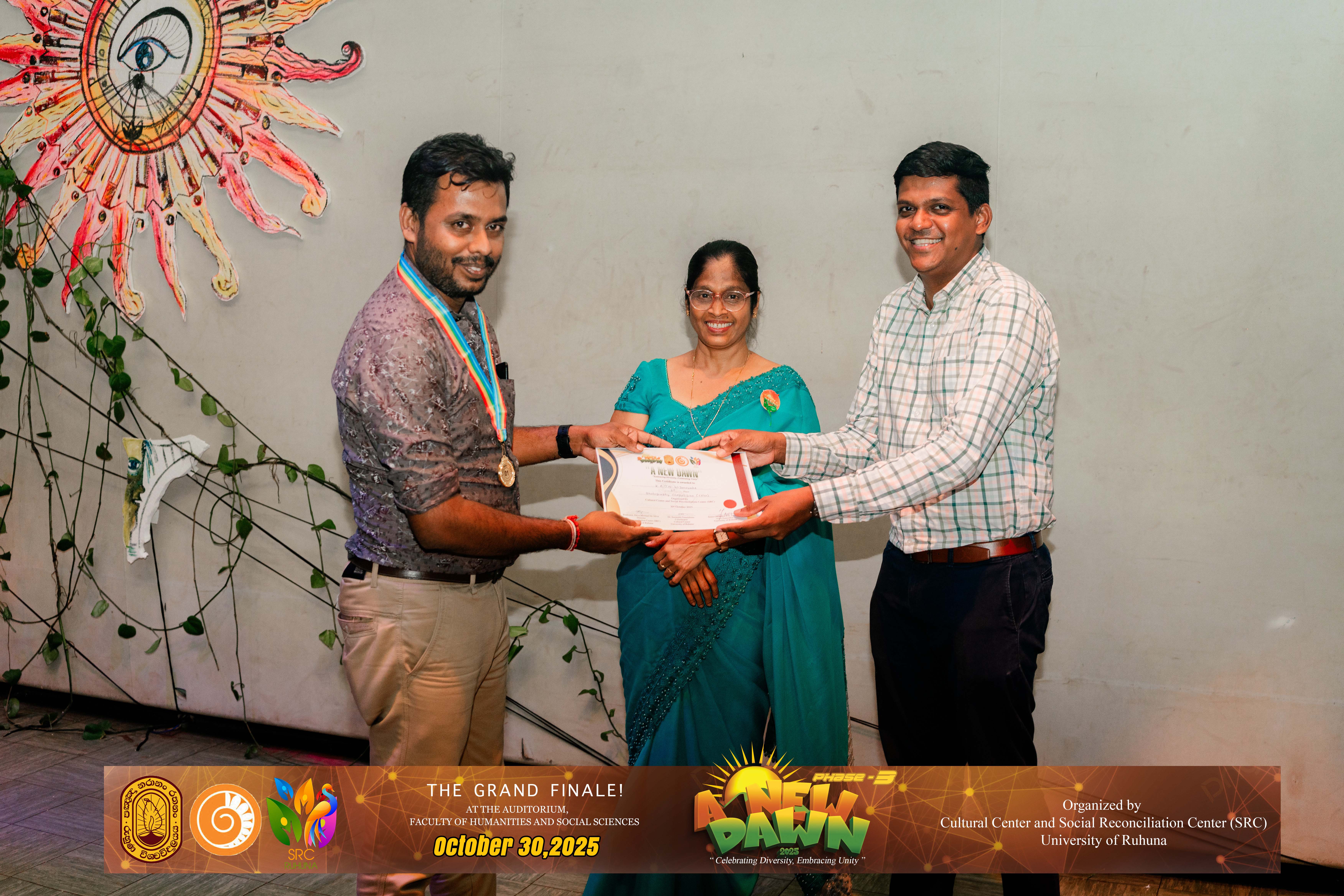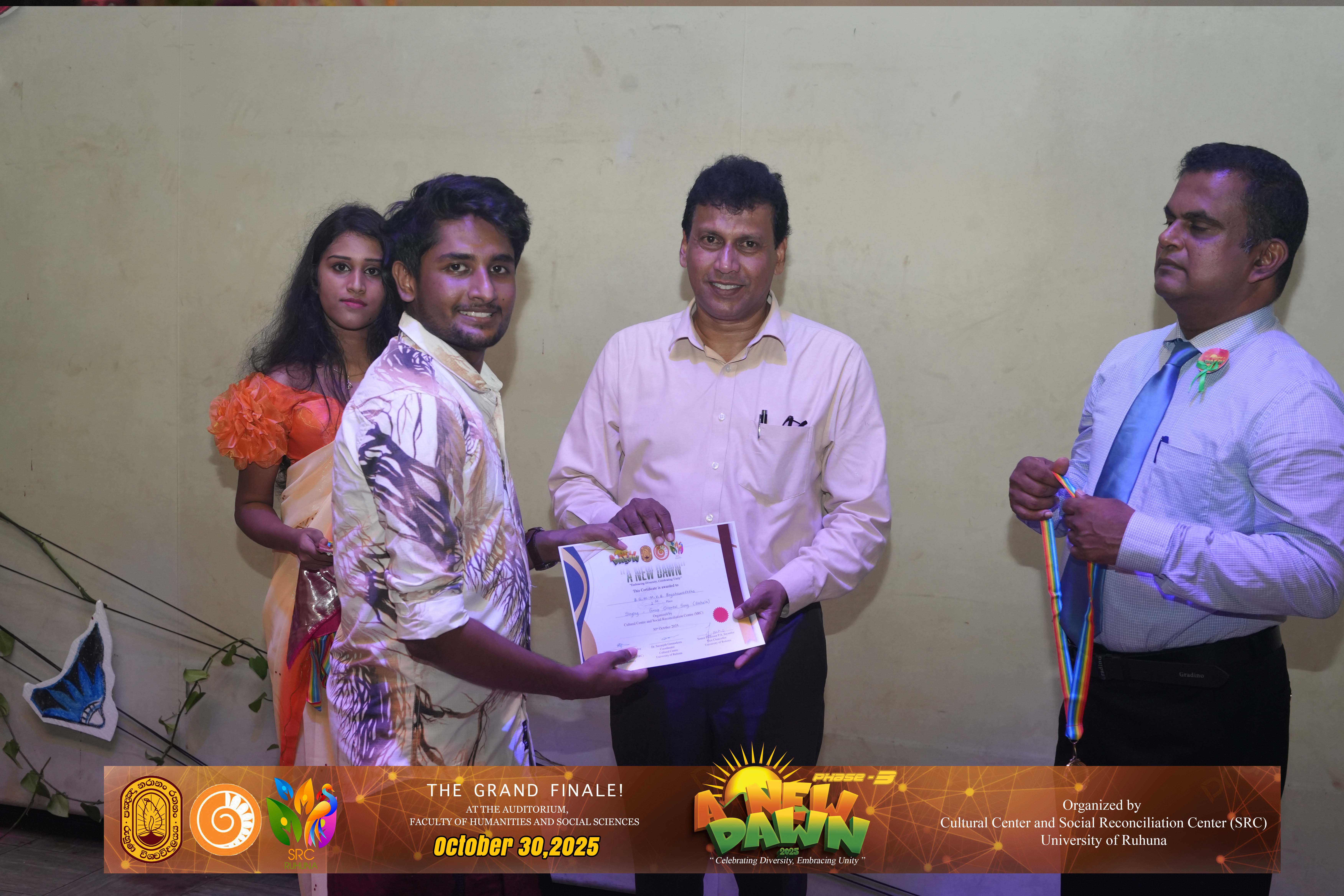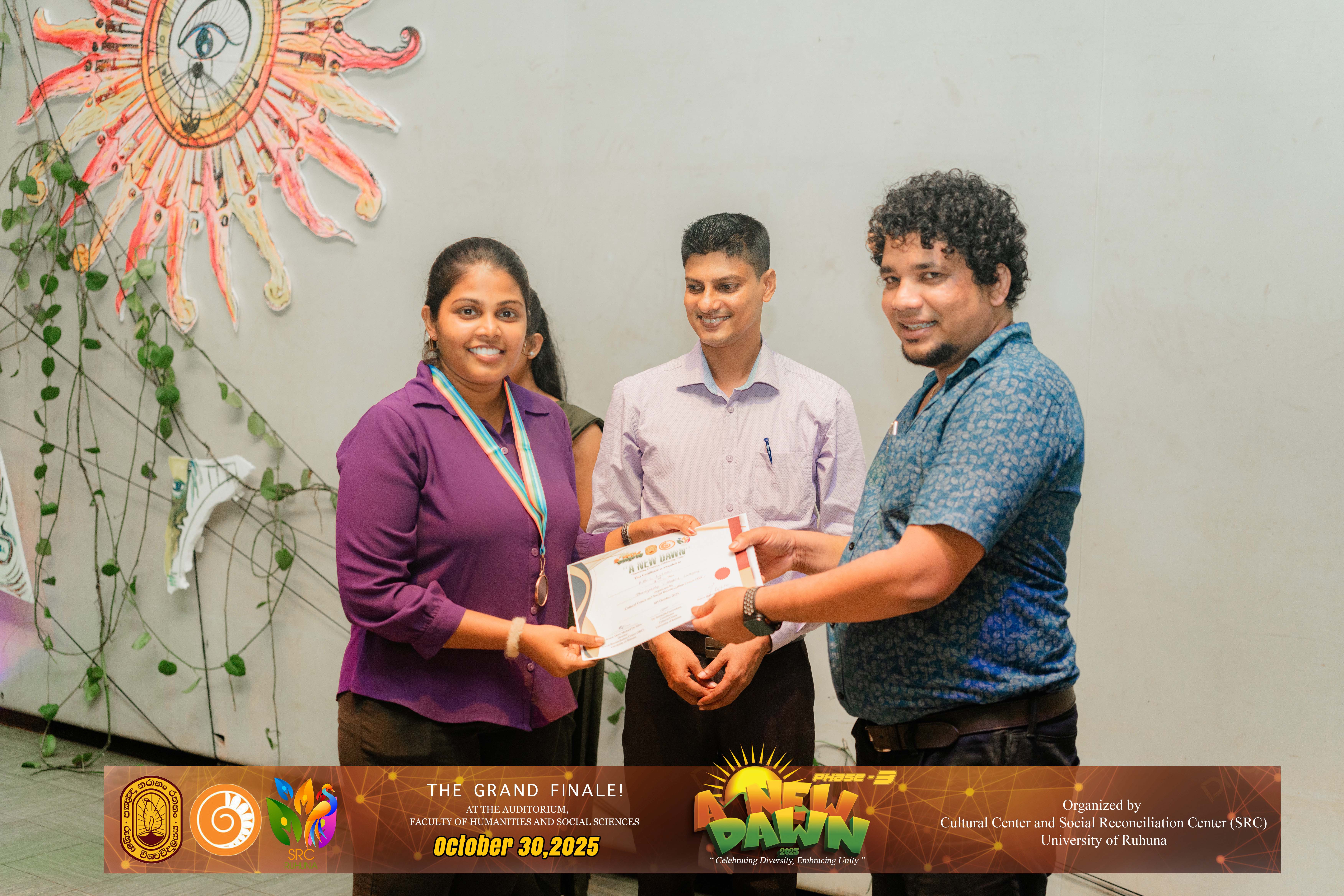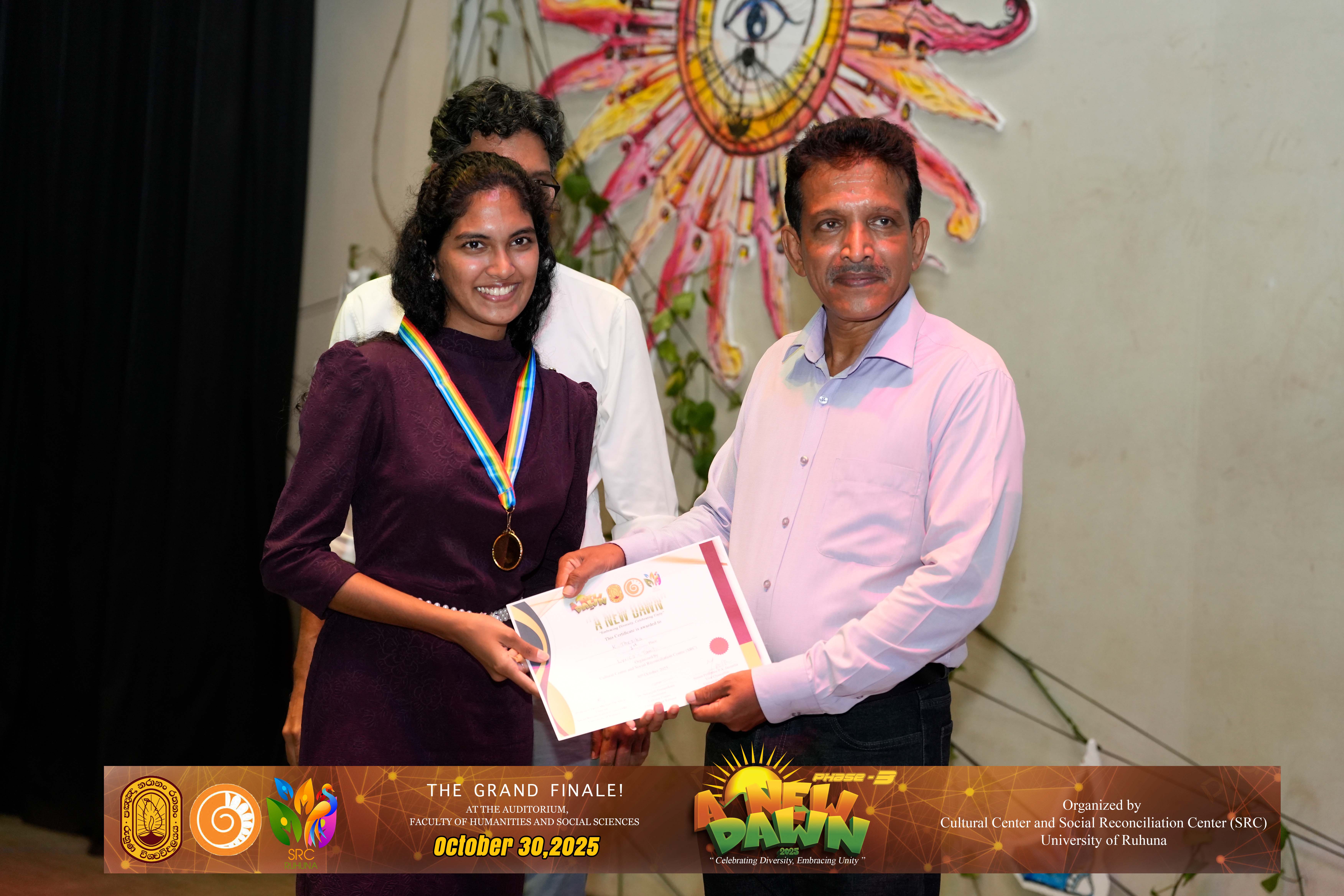 The Certificate Awarding Ceremony and Grand Finale, held under the theme “Celebrating Diversity and Embracing Unity,” successfully took place on October 30, 2025, at the Auditorium of the Faculty of Humanities and Social Sciences, University of Ruhuna. The event was organized in collaboration with the Social Reconciliation Centre (SRC).