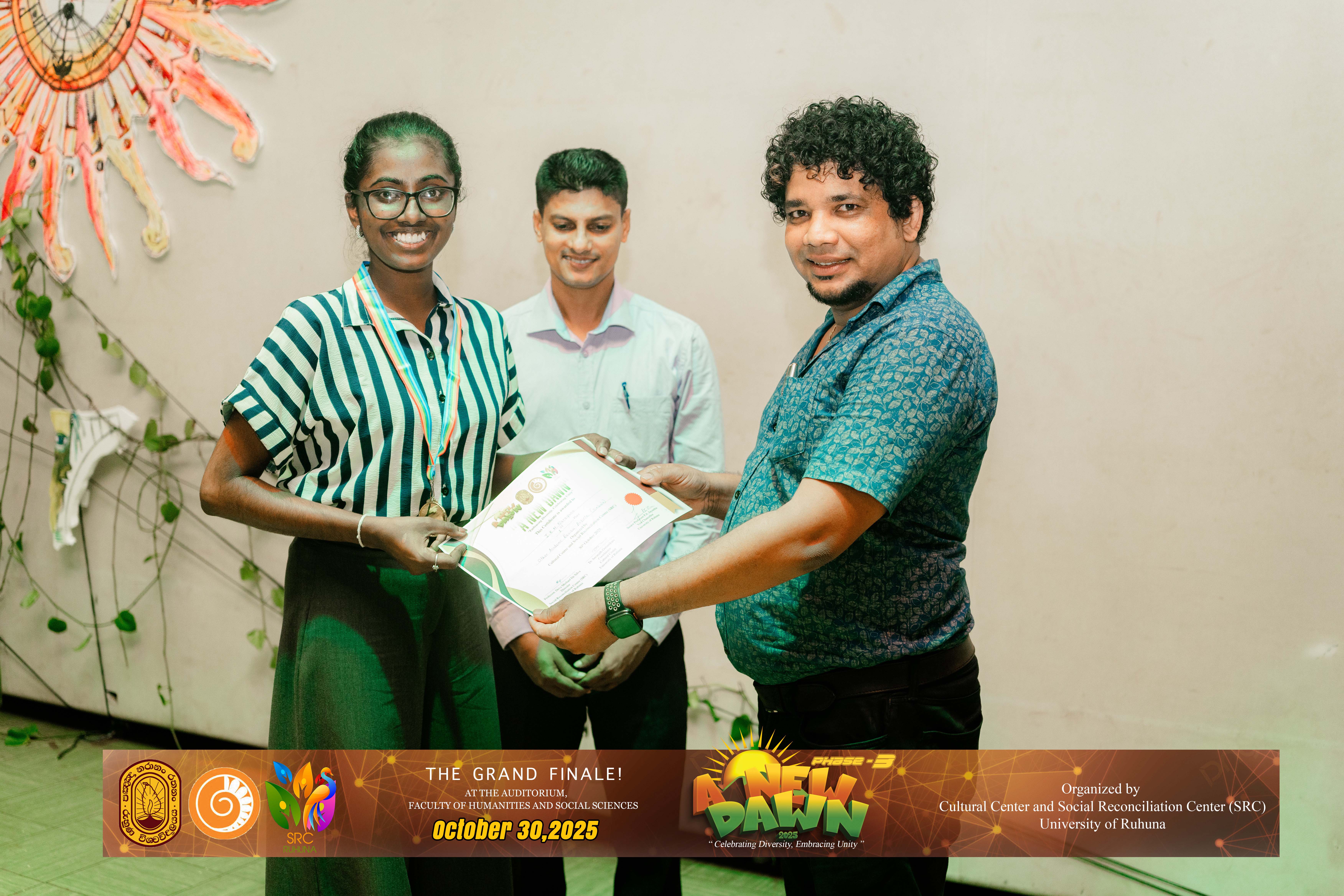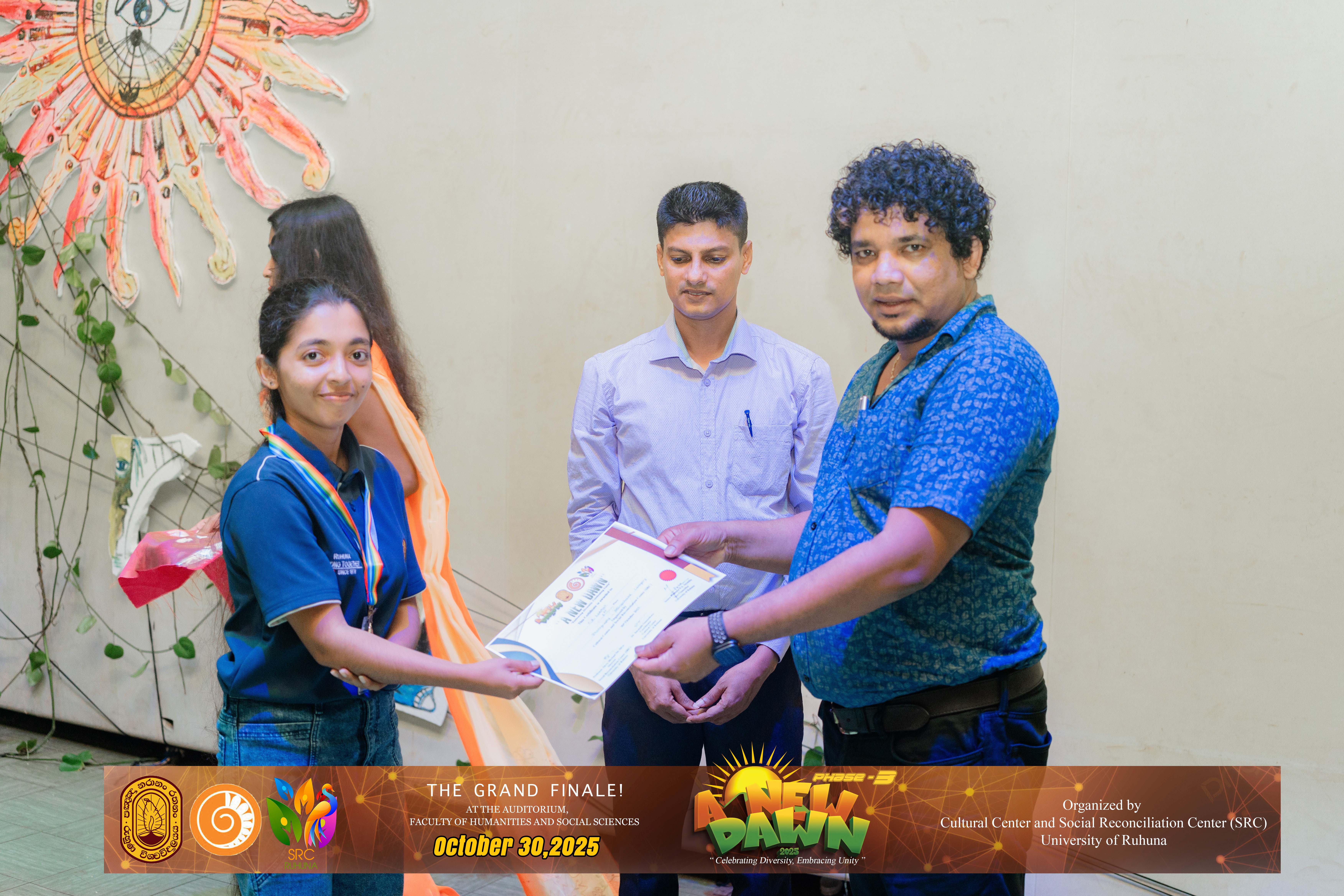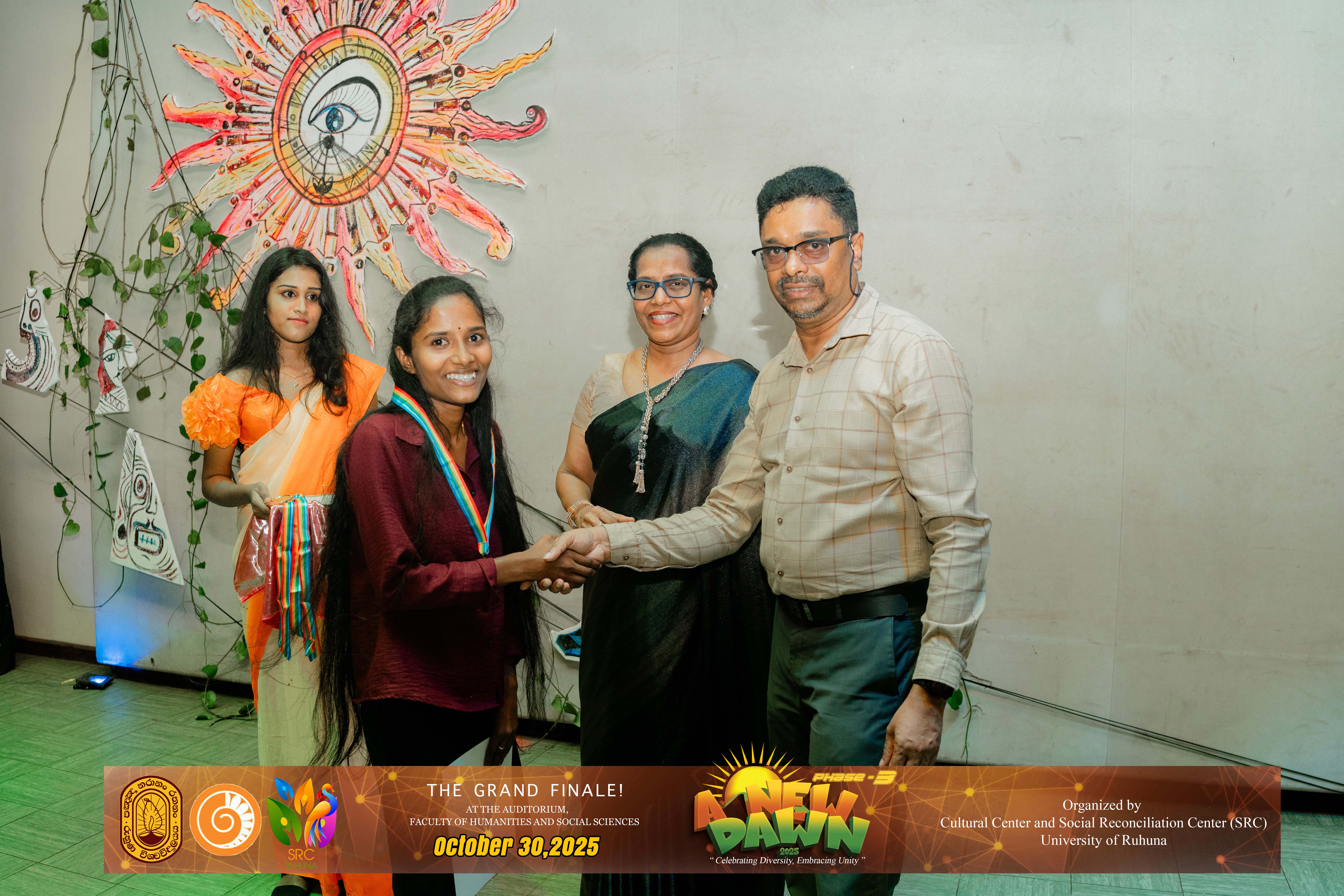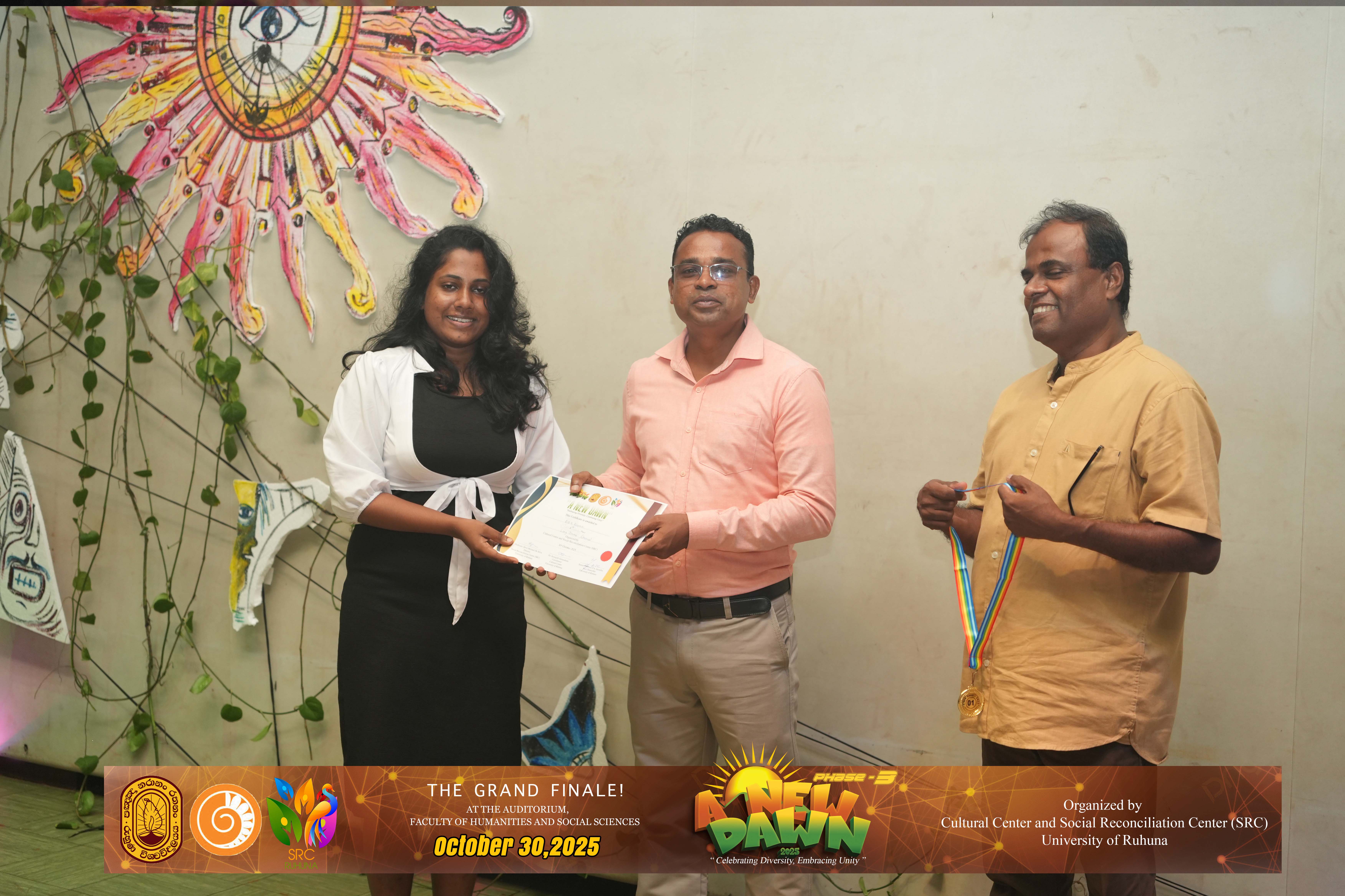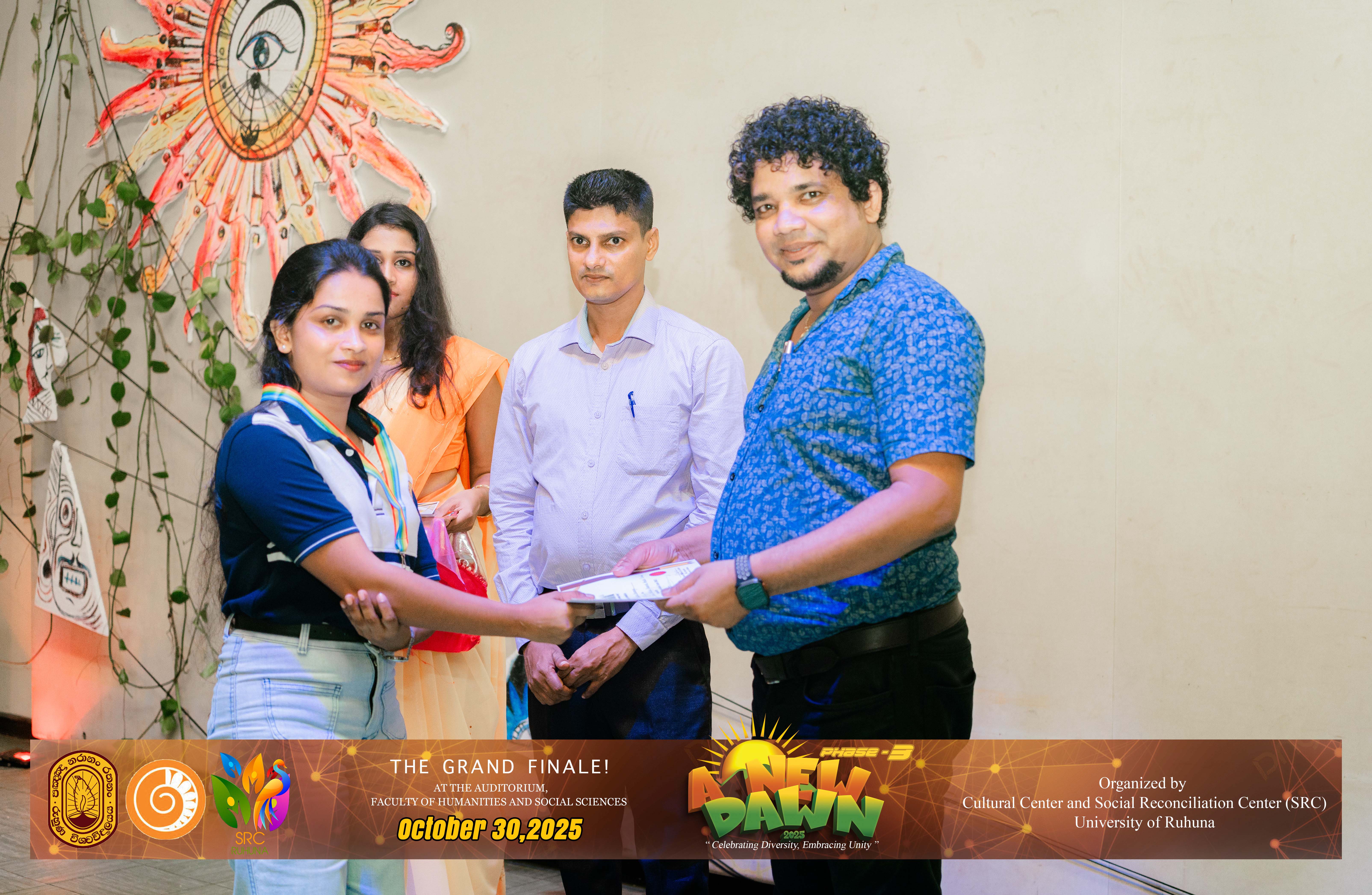 The Certificate Awarding Ceremony and Grand Finale, held under the theme “Celebrating Diversity and Embracing Unity,” successfully took place on October 30, 2025, at the Auditorium of the Faculty of Humanities and Social Sciences, University of Ruhuna. The event was organized in collaboration with the Social Reconciliation Centre (SRC).