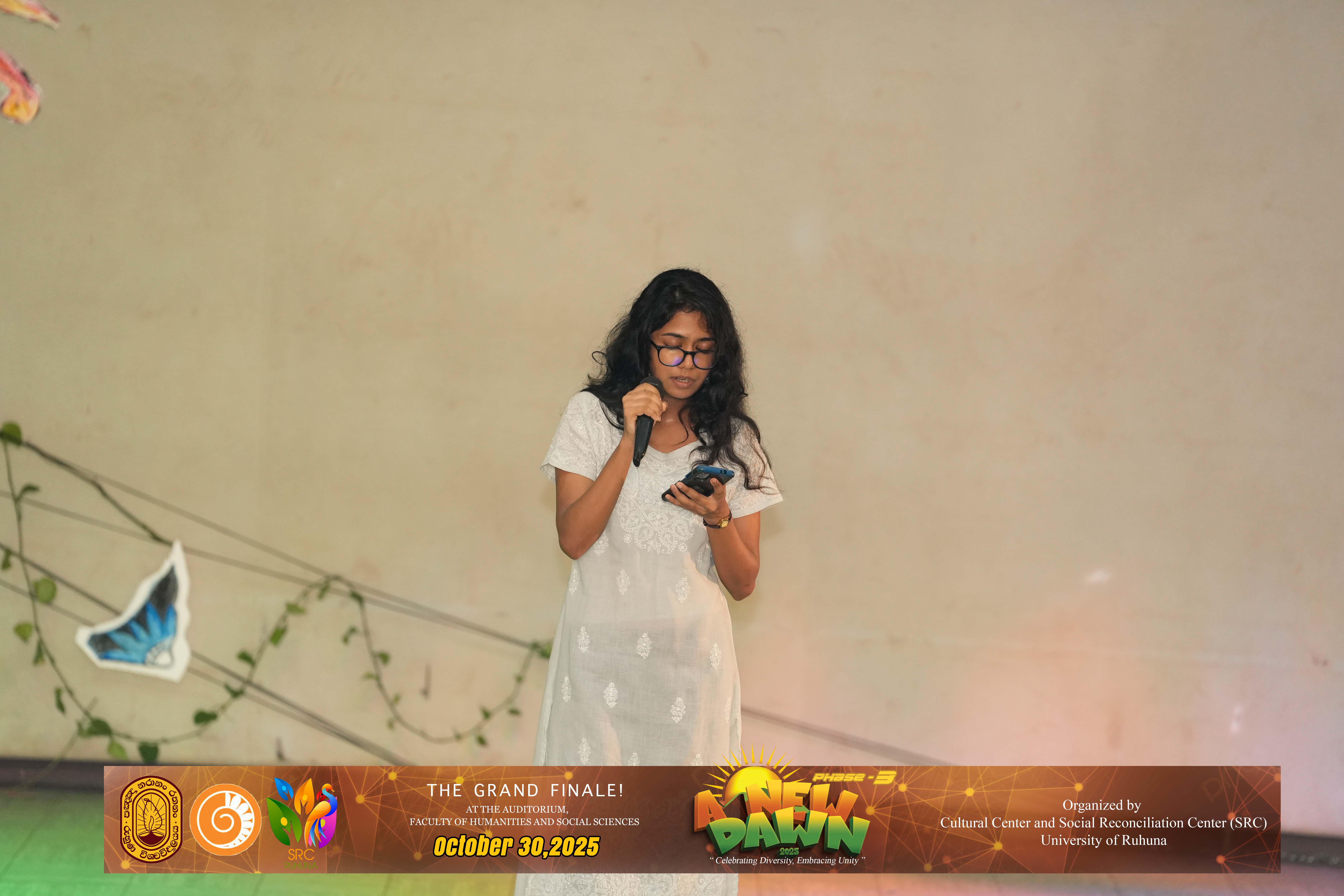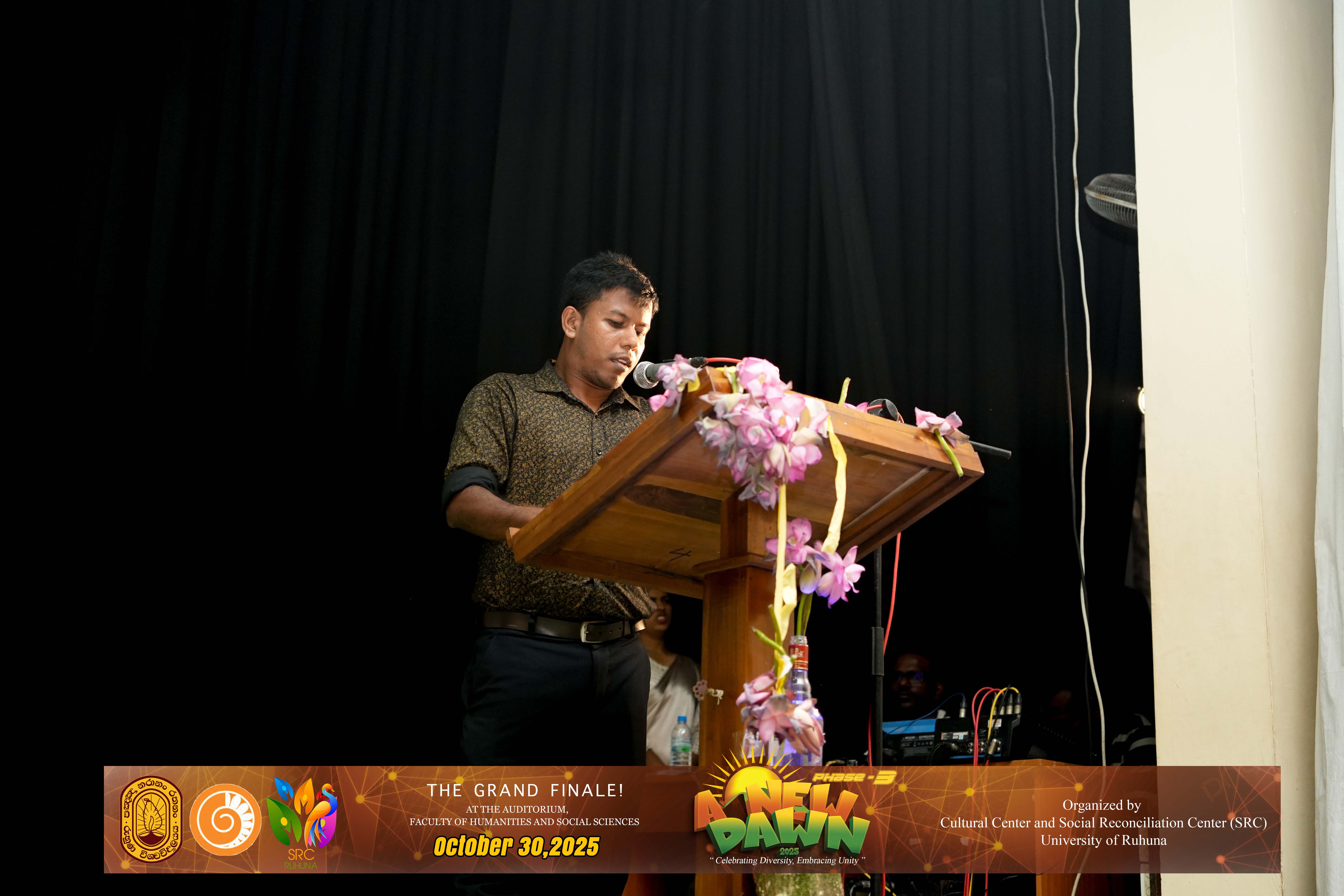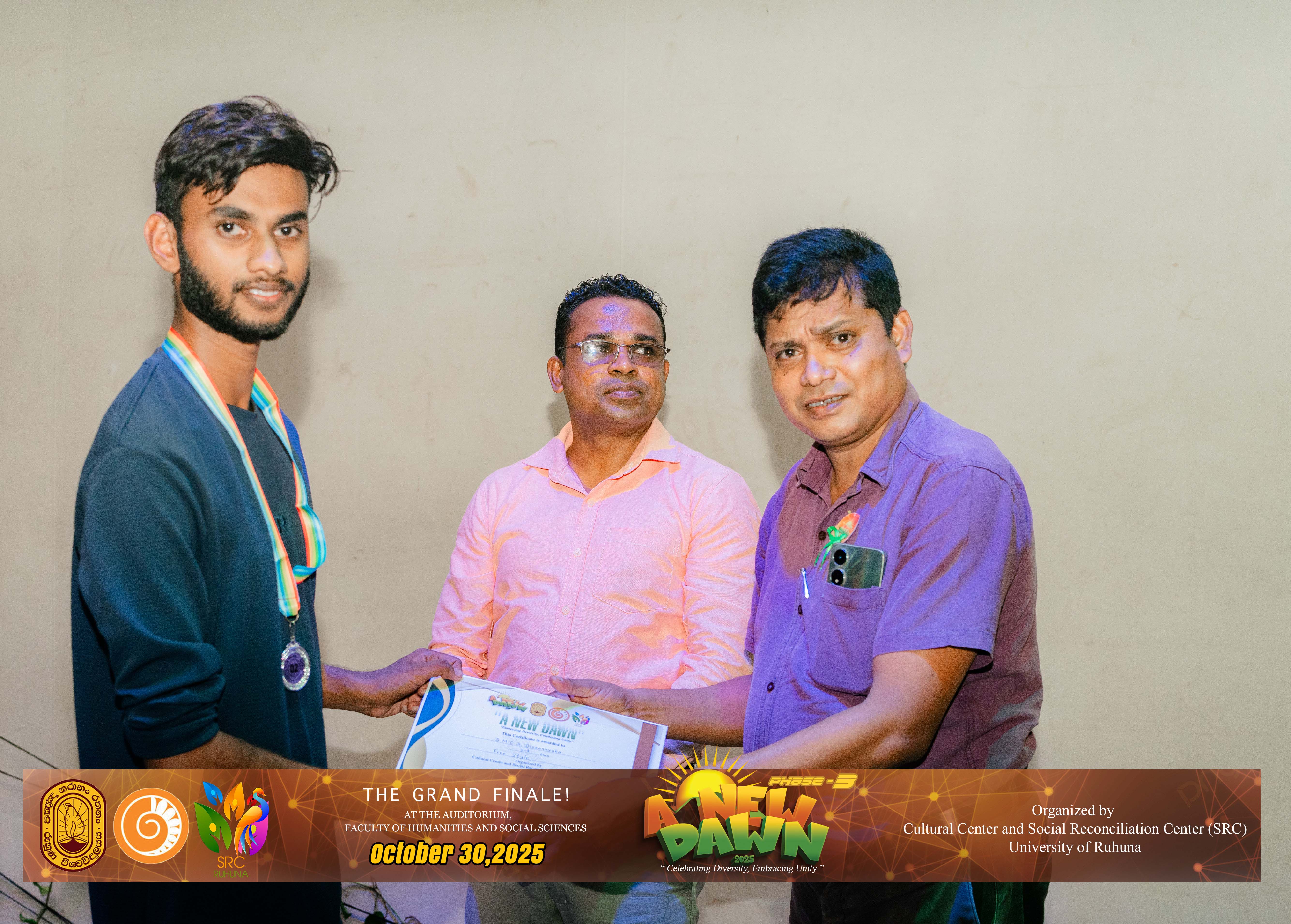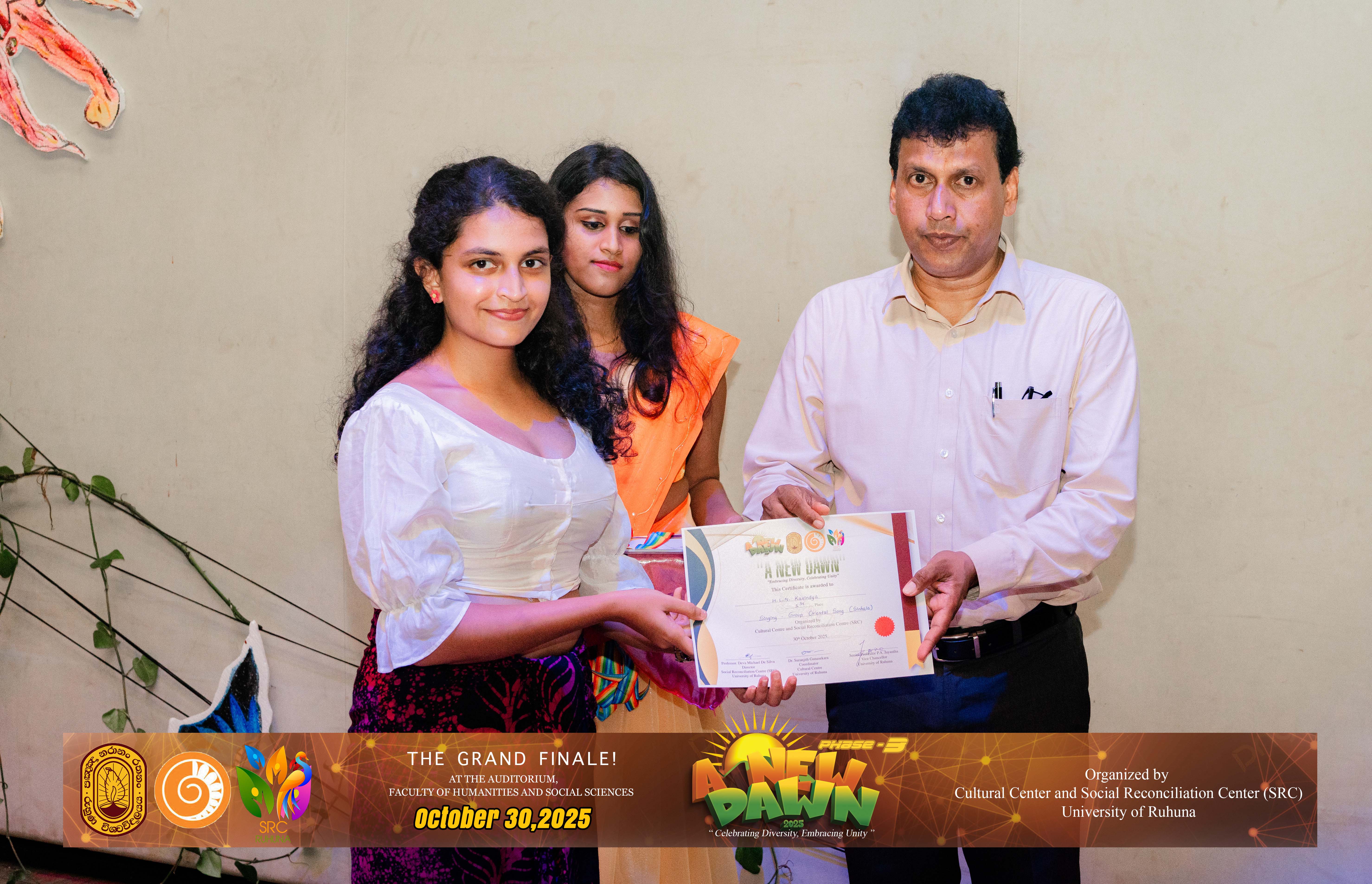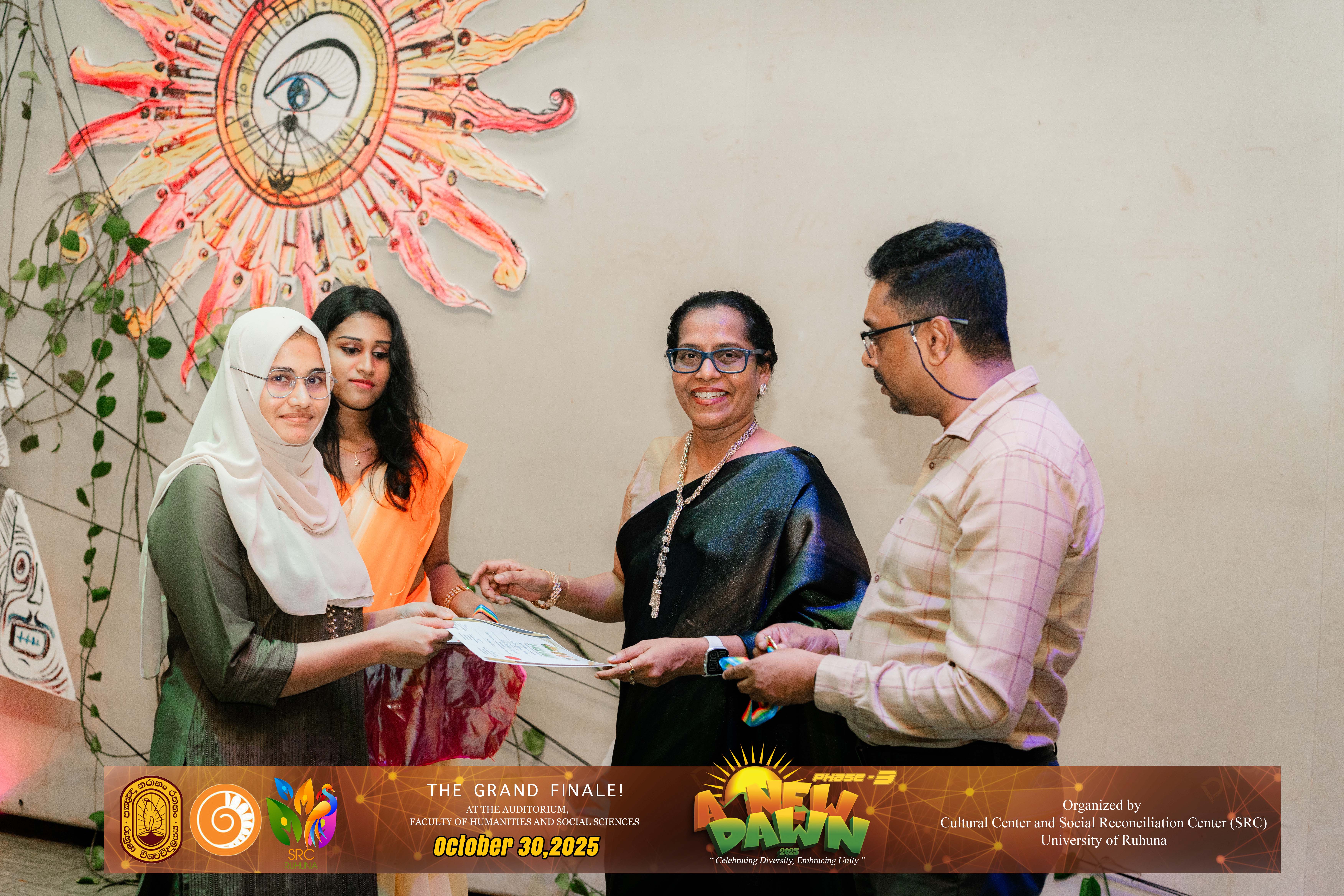 The Certificate Awarding Ceremony and Grand Finale, held under the theme “Celebrating Diversity and Embracing Unity,” successfully took place on October 30, 2025, at the Auditorium of the Faculty of Humanities and Social Sciences, University of Ruhuna. The event was organized in collaboration with the Social Reconciliation Centre (SRC).