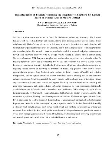 Keywords: Hospitality, Sri Lanka, Southern Province, Tourism, Tourist satisfaction