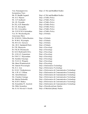 Ven. Parasangaswewa Dept. of Pali and Buddhist Studies