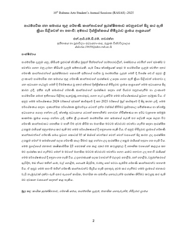 10 Ruhuna Arts Student’s Annual Sessions (RASAS) -2025