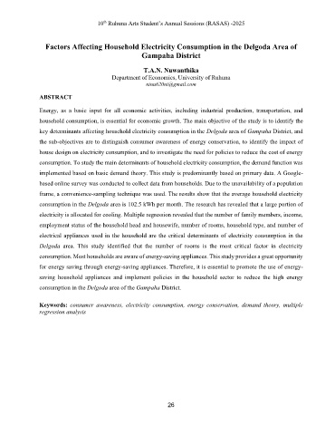 consumption in the Delgoda area is 102.5 kWh per month. The research has revealed that a large portion of