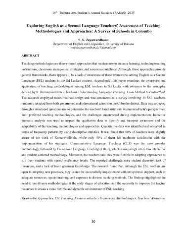 Language (ESL) teachers in the Sri Lankan context. Accordingly, this paper examines the awareness and