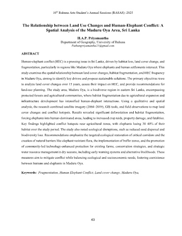 Keywords: Fragmentation, Human Elephant Conflict, Land cover change, Maduru Oya,