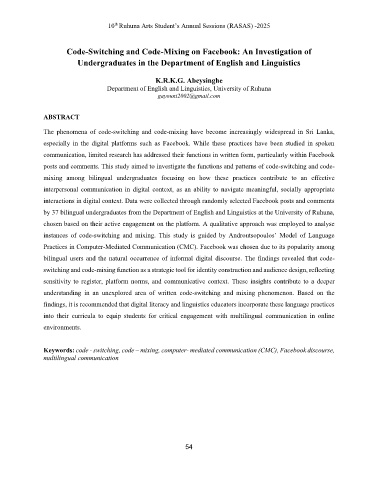 Keywords: code - switching, code – mixing, computer- mediated communication (CMC), Facebook discourse,