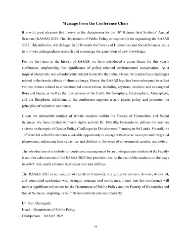 It is with great pleasure that I serve as the chairperson for the 10 Ruhuna Arts Students’ Annual