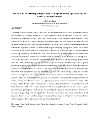 maritime hub, providing resilience against Indo-Pacific power pressures. In conclusion, Sri Lanka must
