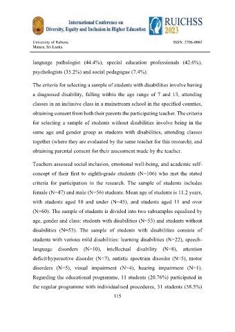 students with various mild disabilities: learning disabilities (N=22), speech-